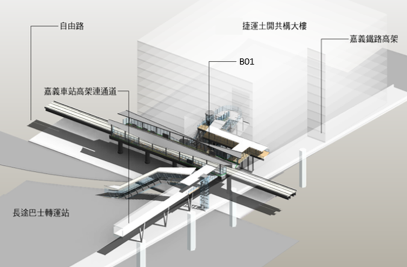 圖2 B01站與臺鐵嘉義站轉乘構想圖